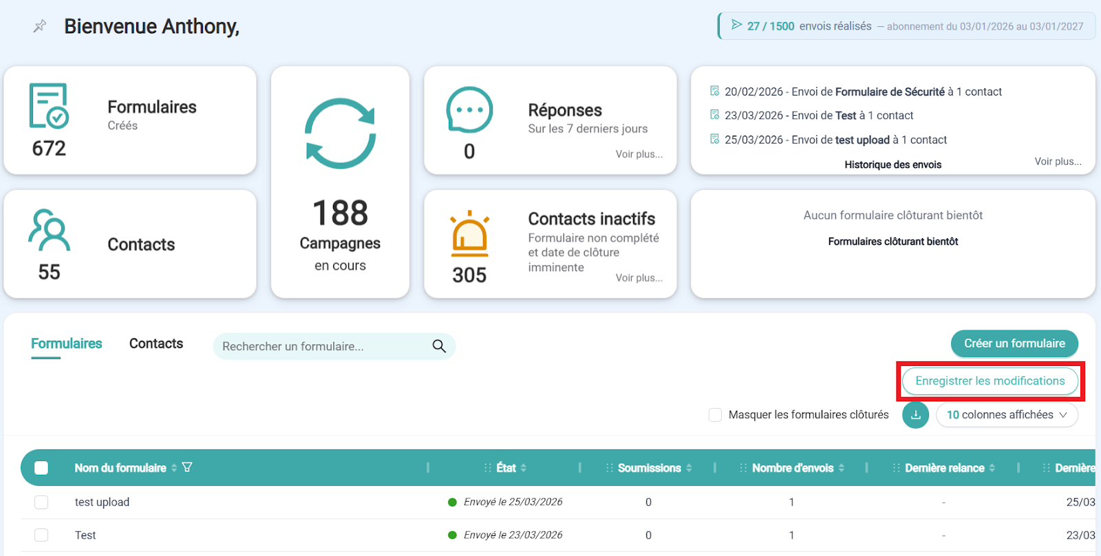 - Cliquez sur Enregistrer pour valider vos modifications.