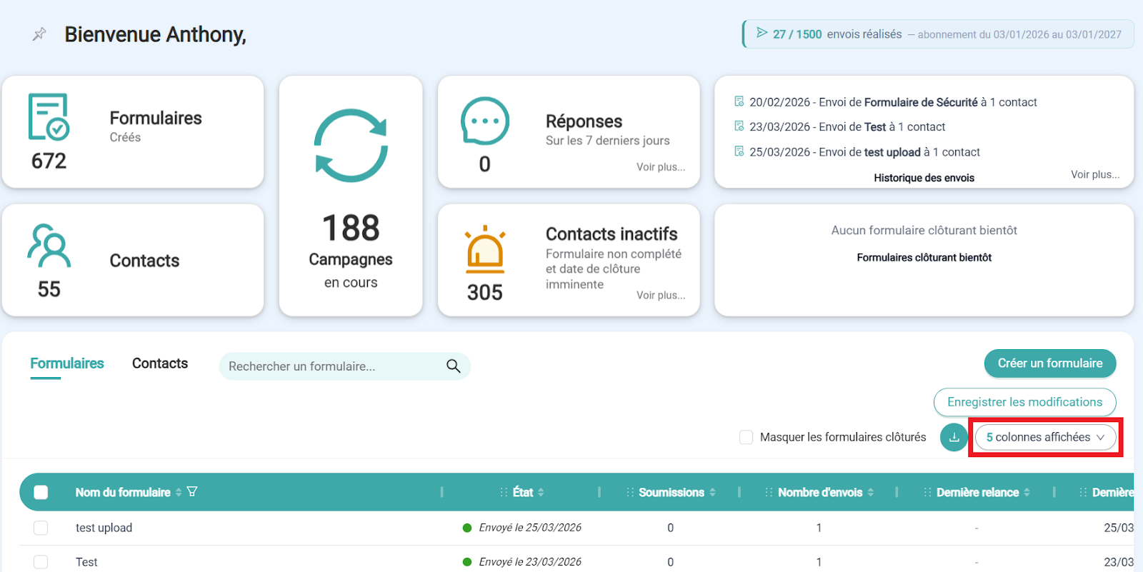 ⚙️ Paramétrer les colonnes affichées :