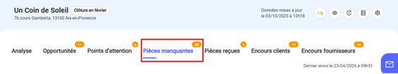 - 📑 Rendez-vous dans l’onglet « Pièces manquantes ».