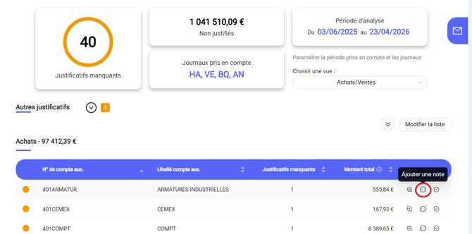 | Note | Compte (global) | Ajouter une remarque générale concernant l’ensemble du compte | 📝 |