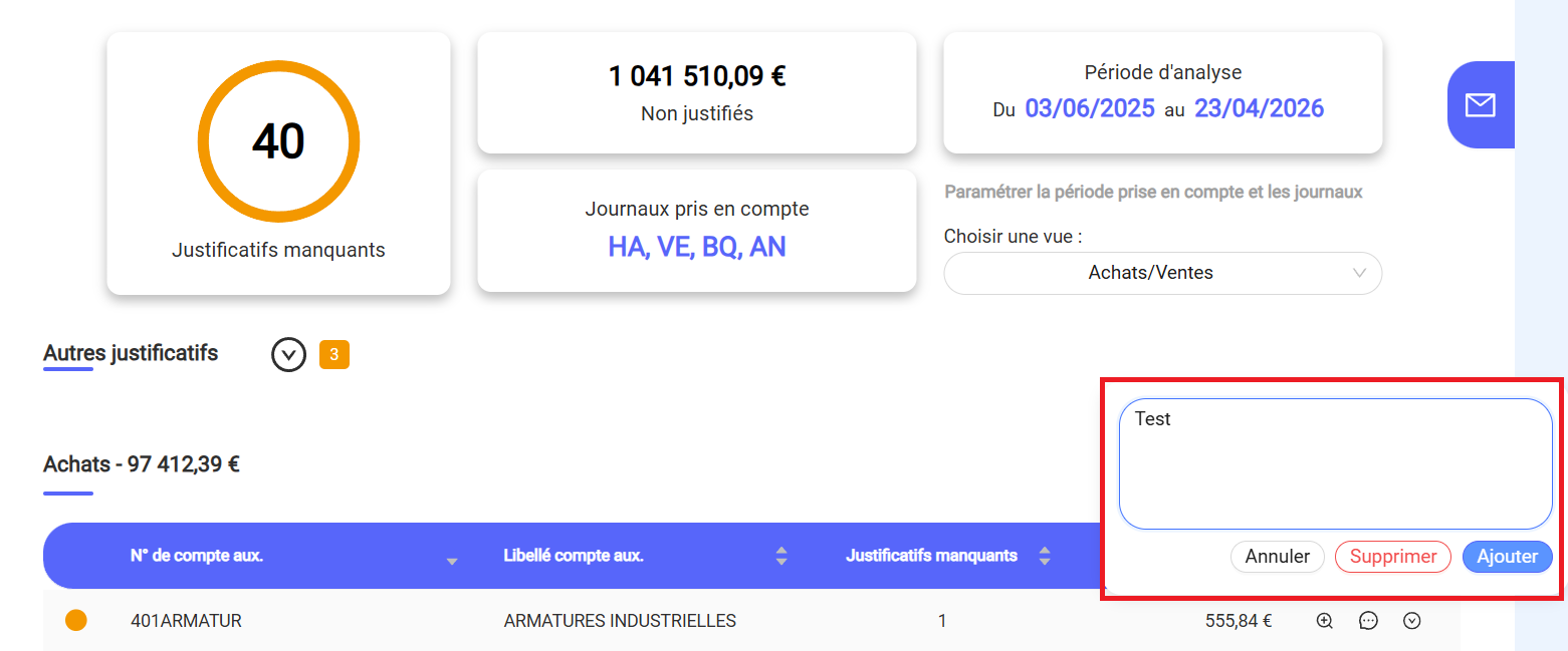 | Commentaire | Opération / écriture | Ajouter une précision sur une ligne spécifique | 💬 |