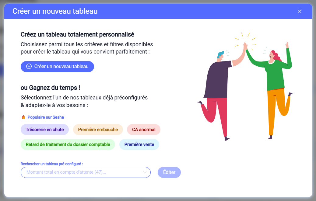 Vous pourrez, par exemple, créer des tableaux en affichant uniquement les dossiers client sur lesquels vous travaillez, suivre les comptes d’associés débiteurs, ...