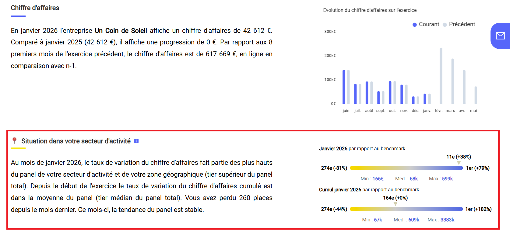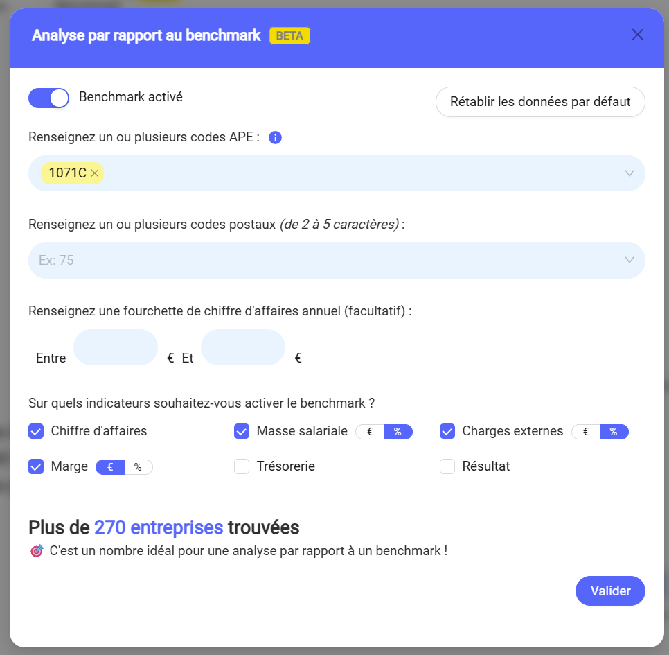 Il est possible de définir une fourchette de chiffre d’affaires annuel afin de comparer l’entreprise avec des structures de taille similaire.