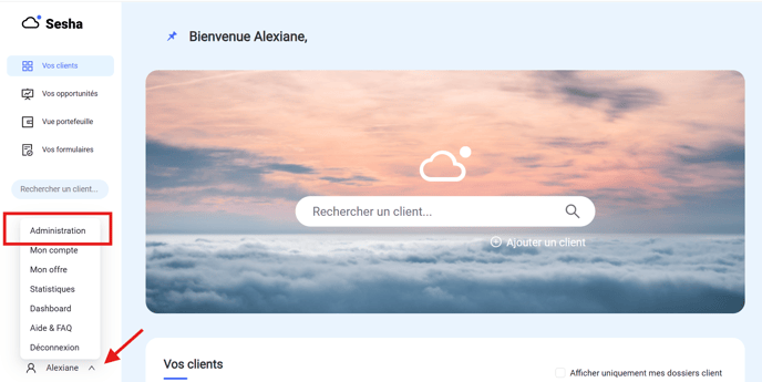 ✅ Si vous n'êtes pas "Administrateur", disposer des droits d'accès à la partie Administration dans Sesha