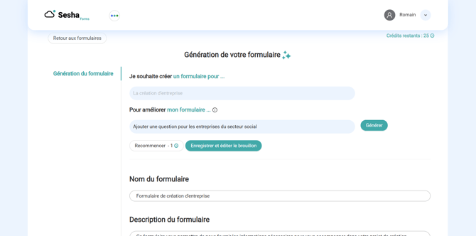 Comment générer un formulaire grâce l'IA Sesha Forms ?